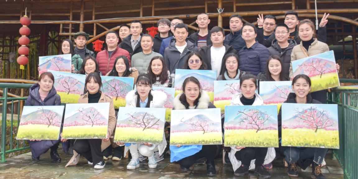 活動當(dāng)日,公司邀請了四川省美術(shù)家協(xié)會會員、“寫生中國”四川分會成員張春平老師對大家進(jìn)行繪畫指導(dǎo)。陽春三月,桃李爭艷、菜花金黃。盡管當(dāng)天春雨霏霏,但寒冷擋不住大家的激情。在老師的教學(xué)下,大家興致昂揚(yáng),充分發(fā)揮自己的想象力,勾勒出一幅幅色彩斑斕的美好畫卷。整個活動在積極歡快的氛圍中度過,參加活動的每一位職工均完成了一幅自己滿意的畫作。