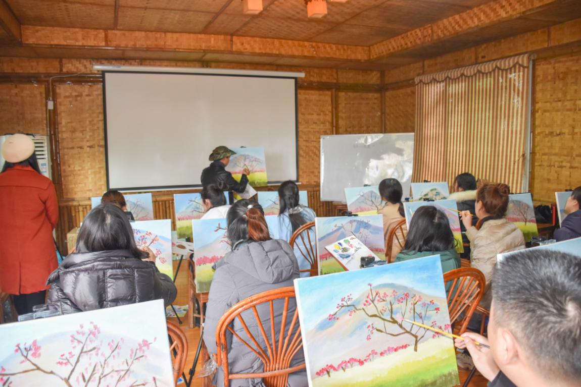 陽春三月花爭艷,共揮彩筆繪畫卷