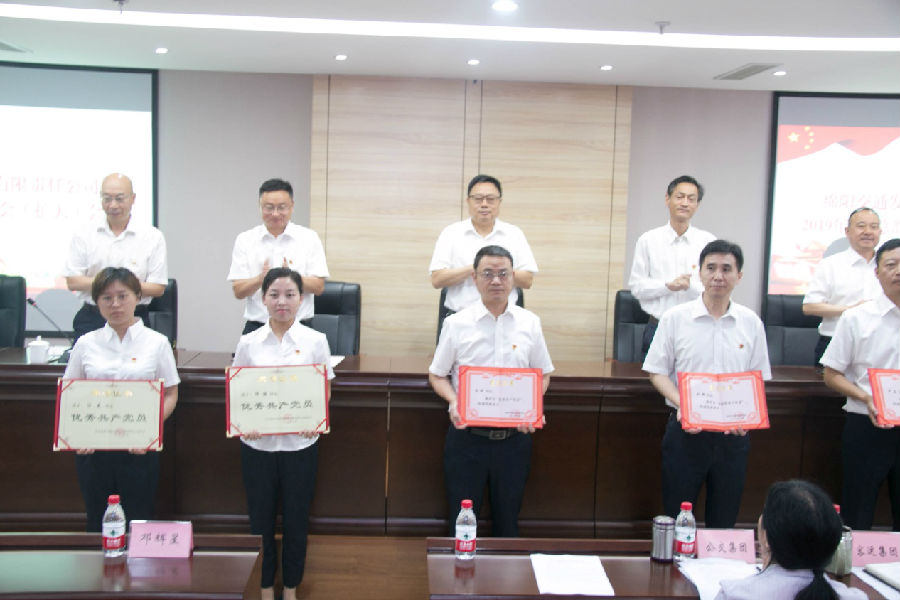黨委副書記、紀(jì)委書記田青春宣讀《中共綿陽交通發(fā)展集團(tuán)有限責(zé)任公司委員會關(guān)于表彰2019年先進(jìn)基層黨組織、優(yōu)秀共產(chǎn)黨員、優(yōu)秀黨務(wù)工作者的通報(bào)》,并由集團(tuán)公司領(lǐng)導(dǎo)為2019年優(yōu)秀共產(chǎn)黨員、優(yōu)秀黨務(wù)工作者代表頒獎(jiǎng)。