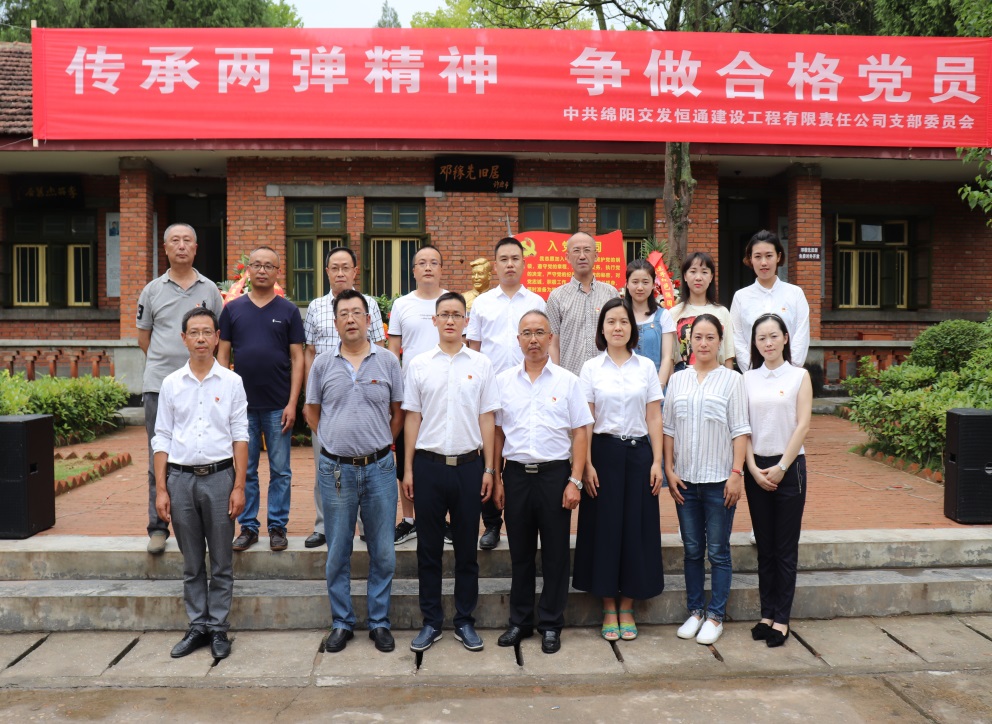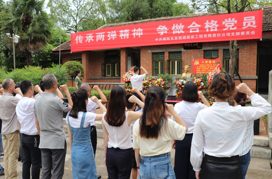 大會在全體人員齊唱《沒有共產黨就沒有新中國》的歌聲中落幕。大會結束后,恒通建工黨支部開展了以“弘揚兩彈精神,爭做合格黨員”為主題的主題黨日活動。在黨支部書記鐘勇的帶領下,全體人員冒雨首先來到公司承建的梓東路項目建設現場,實地查看了項目推進情況?;顒幼詈?,全體人員來到梓潼兩彈城進行參觀學習,重溫革命先輩們艱苦卓絕的奮斗歷史,學習兩彈元勛們無私奉獻的愛國精神。在黨支部書記鐘勇的帶領下,全體成員首先來到我國“兩彈元勛”—鄧稼先銅像前,進行了莊嚴的獻花儀式并重溫入黨誓詞。隨后,全體成員參觀了院士故居、兩彈歷程館和三防教育基地等場館,通過講解員生動詳實的講解,展廳內的圖文展示、實物陳列、模擬場景以及視頻資料,讓全體人員重溫了我國發(fā)展兩彈那段波瀾壯闊的歷史。老一輩科學家在研發(fā)過程中凝聚成的“愛國奉獻、艱苦奮斗、協(xié)同攻關、求實創(chuàng)新、勇攀高峰”的兩彈精神,深深地震撼、感動和鼓舞著現場的每個人。