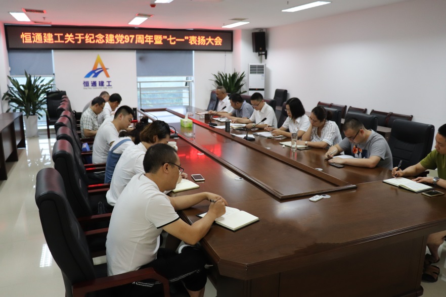 為隆重紀念中國共產黨成立97周年,回顧黨的光輝歷程,謳歌黨的豐功偉績,動員黨員干部牢記使命、擔當實干、創(chuàng)先爭優(yōu)。?6月29日,恒通建工黨支部隆重召開紀念建黨97周年暨“七一”表揚大會。大會由恒通建工黨支部書記鐘勇主持。