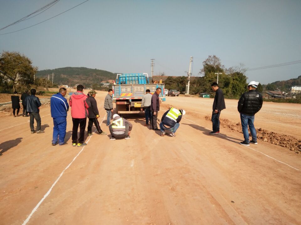 市交通質(zhì)監(jiān)站譚斌、何光斌、楊森,集團(tuán)工程管理部郭明璐、陳樹強(qiáng)、楊函,省道205線一期工程施工、監(jiān)理單位等相關(guān)人員參加此次路基交驗(yàn)工作。