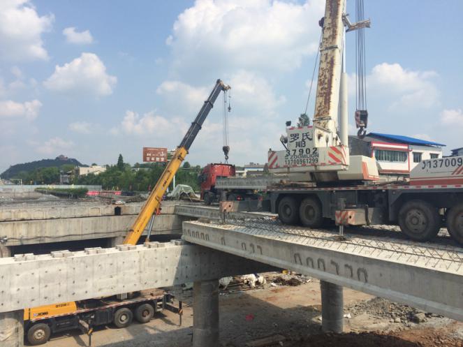 7月14日,在魏柳河一號(hào)橋?yàn)?zāi)損搶險(xiǎn)工程建設(shè)工地,2臺(tái)(75噸和50噸)吊車將一根長16米、重達(dá)20噸的預(yù)應(yīng)力箱梁梁板穩(wěn)穩(wěn)地架設(shè)在了魏柳河一號(hào)橋第一跨橋梁兩端橋墩上,這標(biāo)志著魏柳河一號(hào)橋?yàn)?zāi)損搶險(xiǎn)工程已進(jìn)入最后沖刺階段。