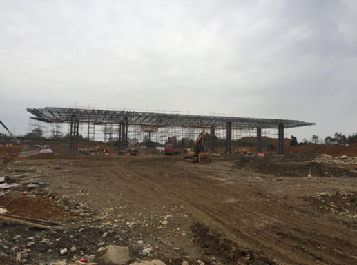 2015年12月13日下午15:00時(shí),在交發(fā)集團(tuán)統(tǒng)籌協(xié)調(diào)和大力推進(jìn)下,四川高路交通信息工程有限公司、四川高路建筑工程有限公司完成了G5綿廣高速公路綿陽(yáng)(金家林)收費(fèi)站改造工程收費(fèi)站大棚末節(jié)段吊裝到位、拼接,標(biāo)志著G5綿廣高速公路綿陽(yáng)(金家林)收費(fèi)站改造工程收費(fèi)站大棚主體吊裝順利完成,全面進(jìn)入大棚裝飾裝修階段。