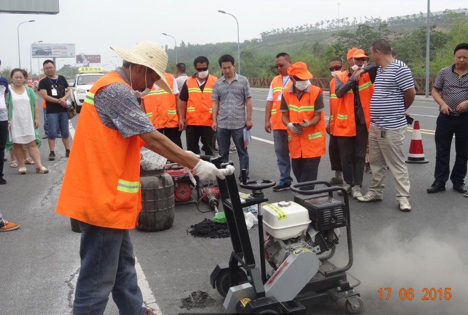 上午十點(diǎn),來自各縣、市、區(qū)公路管理所、養(yǎng)護(hù)公司四十多名參會(huì)代表在市交通運(yùn)輸局公路管理處的組織下來到九嶺養(yǎng)護(hù)站管養(yǎng)的省道S205線綿江路龍門坡(K277+100—K277+600)進(jìn)行現(xiàn)場(chǎng)觀摩。通過路橋公司高等級(jí)公路養(yǎng)護(hù)公司經(jīng)理馬斌現(xiàn)場(chǎng)詳細(xì)介紹,代表們仔細(xì)觀摩了貼縫帶貼縫、普通瀝青灌縫、開槽灌密封膠、薄層修復(fù)、熱再生修補(bǔ)等路面施工過程和完工效果,充分了解了這幾種新設(shè)備和新工藝的操作流程,并進(jìn)行了相關(guān)工作交流,對(duì)公司在預(yù)防性養(yǎng)護(hù)方面取得的成績(jī)給予高度贊揚(yáng)。