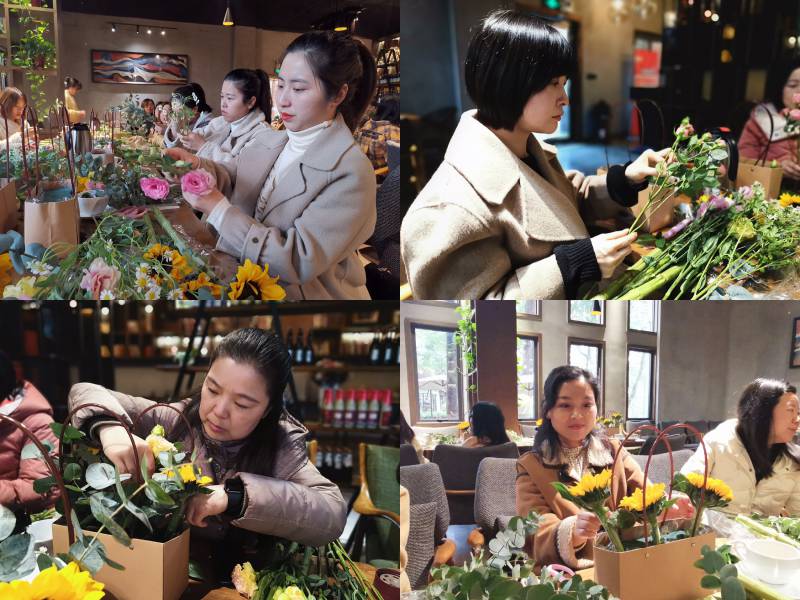 活動(dòng)邀請(qǐng)了專業(yè)花藝師現(xiàn)場(chǎng)授課,花藝?yán)蠋煆孽r花特性、色彩、作用等方面進(jìn)行了生動(dòng)講解,介紹了十余種鮮花的習(xí)性和用法,演示制作了桌擺花藍(lán),讓大家享受了一堂生動(dòng)的插花課程。大家在溫馨愉悅的氛圍中,憑借每個(gè)人對(duì)美的不同理解,把原本普通的花草,經(jīng)過修剪、層次搭配、點(diǎn)綴等步驟,變成了色彩斑斕、獨(dú)具匠心的花藝作品,感受從自己手中綻放的浪漫?!?/p>