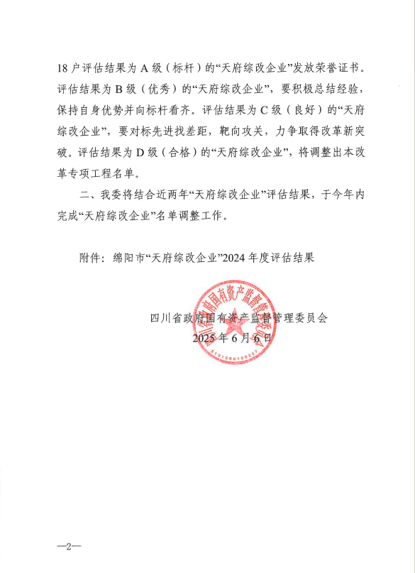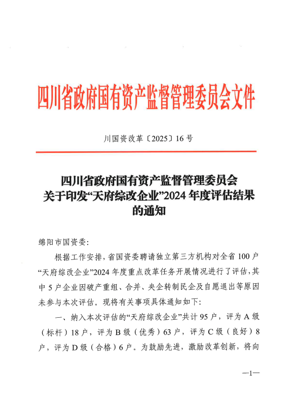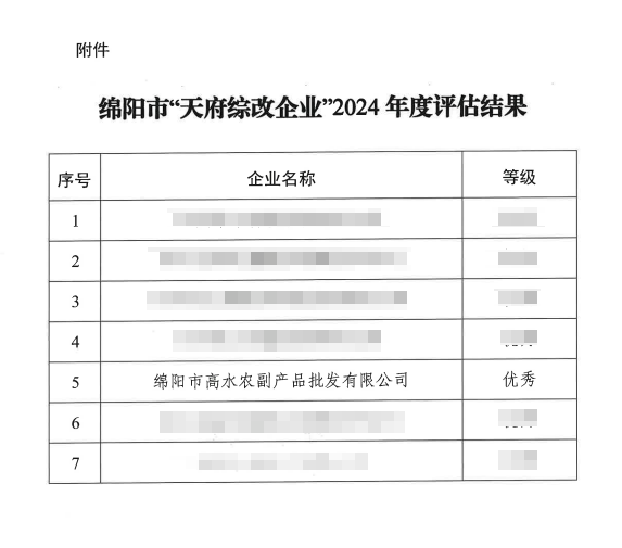喜報(bào)丨高農(nóng)司在省國(guó)資委“天府綜改企業(yè)” 2024年度評(píng)估中榮獲優(yōu)秀等級(jí)