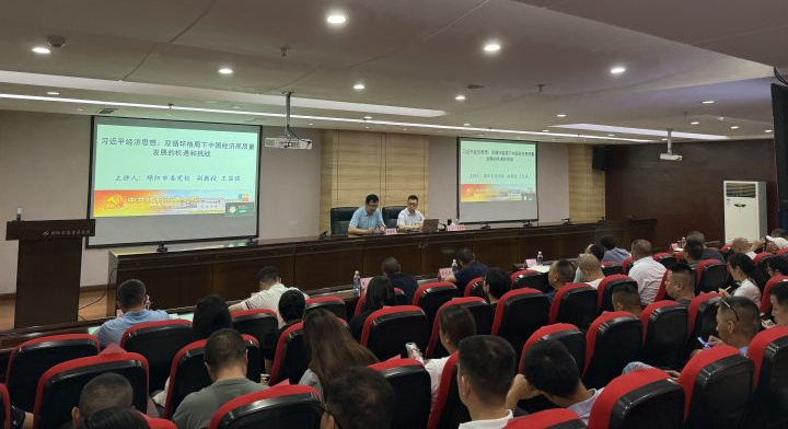 為把學(xué)習(xí)貫徹習(xí)近平新時代中國特色社會主義思想和黨的二十屆三中全會精神不斷引向深入,引導(dǎo)干部群眾全面辯證看待經(jīng)濟(jì)社會發(fā)展形勢,進(jìn)一步增強(qiáng)對發(fā)展的信心,積極投身到推進(jìn)企業(yè)高質(zhì)量新征程中,為發(fā)揮中國科技城優(yōu)勢加快建成省域經(jīng)濟(jì)副中心貢獻(xiàn)力量。6月20日上午,綿陽市委黨校經(jīng)濟(jì)學(xué)教研室副教授王顯強(qiáng)以《習(xí)近平經(jīng)濟(jì)思想:雙循環(huán)格局下中國經(jīng)濟(jì)高質(zhì)量發(fā)展的機(jī)遇和挑戰(zhàn)》為題開展《強(qiáng)信心 促發(fā)展》專題宣講。
