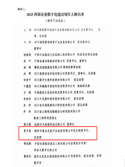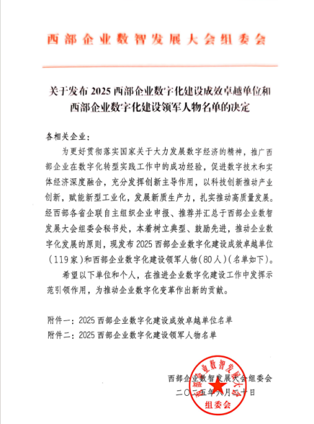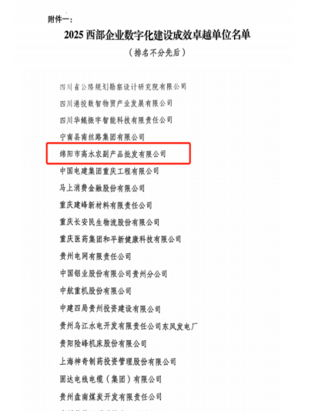 喜報 | 高農(nóng)司被評為“2025西部企業(yè)數(shù)字化建設(shè)成效卓越單位”