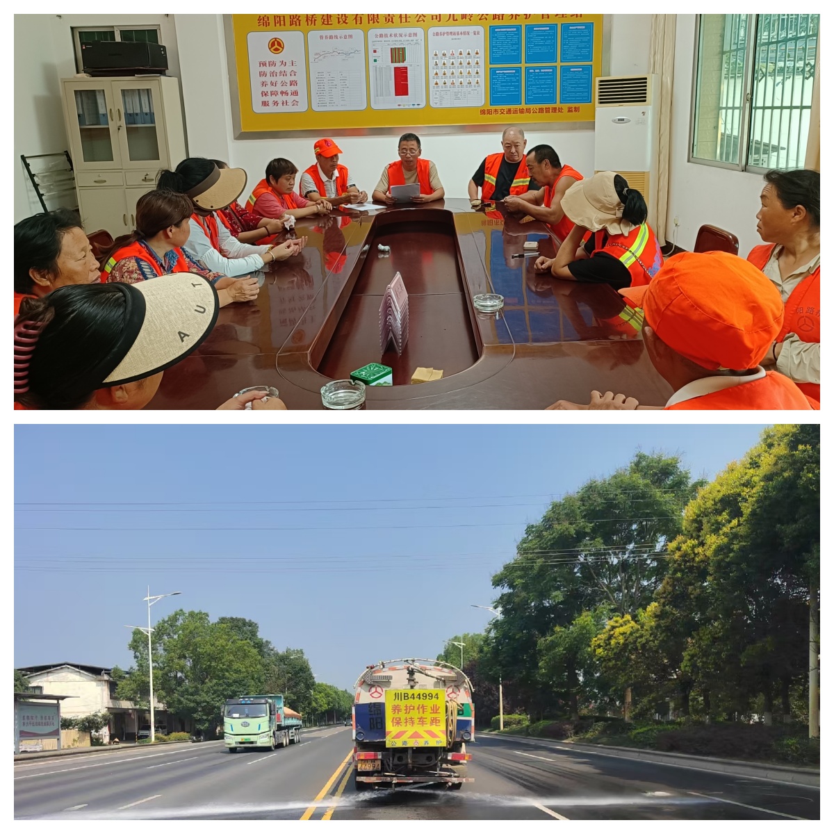 針對高溫天氣道路管養(yǎng)工作,路橋集團一是科學調(diào)整作業(yè)時間。嚴格執(zhí)行“抓兩頭、歇中間”錯峰工作制度,將養(yǎng)護作業(yè)集中在清晨7:00-10:00、下午16:00-18:30,避開高溫時段,最大限度減少養(yǎng)護工人中暑風險。同時,安排專人監(jiān)測氣溫變化,日最高氣溫≥40℃時,停止戶外作業(yè)。二是加大機械化作業(yè)力度。為有效應(yīng)對本輪高溫天氣和臭氧污染,嚴格按照《綿陽市普通國省干線公路日常養(yǎng)護領(lǐng)域揚塵防控工作專項方案(第七版)》要求,加密管養(yǎng)道路灑水降塵頻次,每天出動10輛洗掃車、9輛灑水車、2輛掃地車,為道路消暑降溫。三是嚴格落實防暑保障措施。公司為190名道路養(yǎng)護工人配備手套、防曬面罩等防護裝備,發(fā)放藿香正氣液、風油精、夏桑菊顆粒等防暑物資,強化防暑保障,落實人文關(guān)懷。四是加強一線安全教育。定期開展高溫作業(yè)安全培訓(xùn),重點強調(diào)防暑、防灼傷、防車輛事故等注意事項,切實提升養(yǎng)護工人高溫作業(yè)安全意識和防護措施。規(guī)范現(xiàn)場管理,作業(yè)區(qū)域嚴格設(shè)置警示標志,配備反光錐桶、警示燈,并安排專人值班值守,確保施工路段作業(yè)安全。