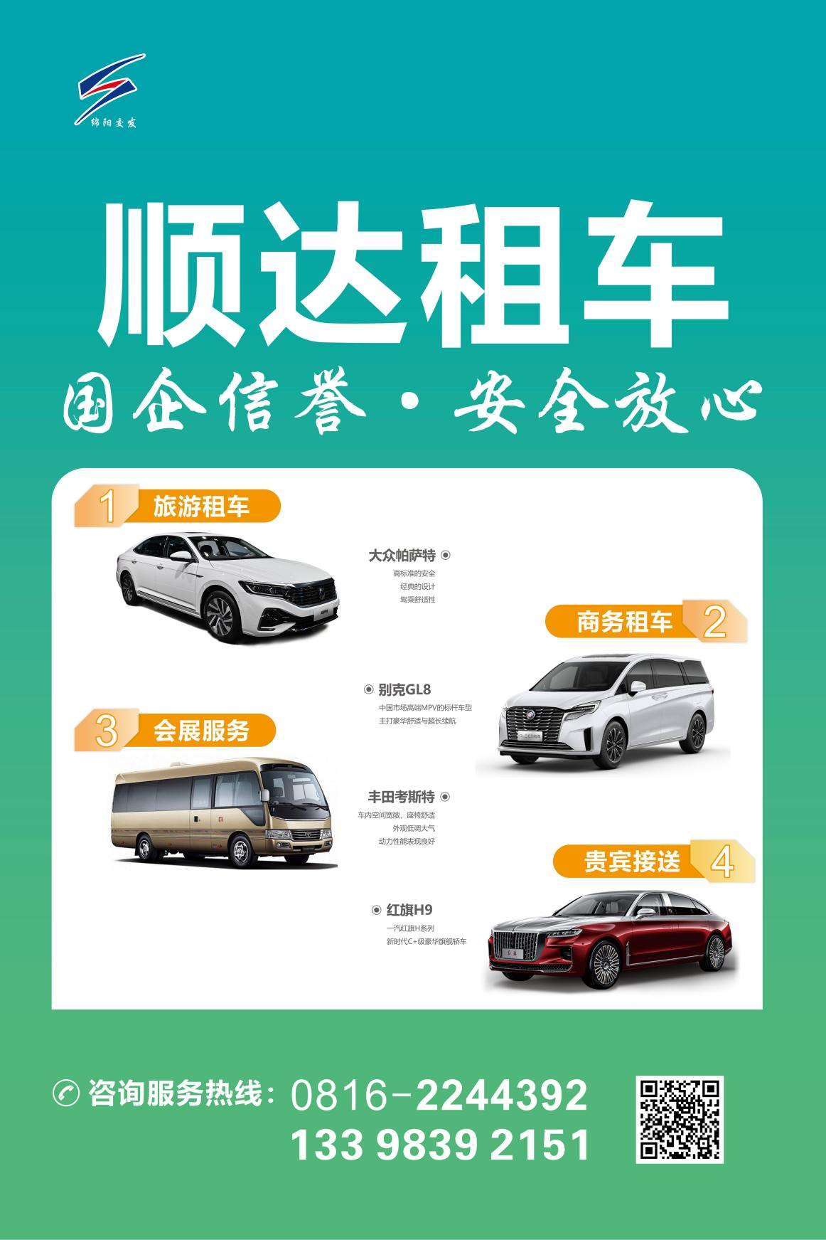 專注本土更專業(yè)。順達(dá)租車是綿陽(yáng)全資國(guó)企,依托本土資源優(yōu)勢(shì)可提供“全車型矩陣+全城網(wǎng)絡(luò)”服務(wù),車型覆蓋5座至53座,服務(wù)場(chǎng)景囊括機(jī)場(chǎng)(高鐵)接送、商務(wù)接待、會(huì)議通勤、活動(dòng)會(huì)展、企業(yè)班車等。配備持有營(yíng)運(yùn)資質(zhì)的專業(yè)司機(jī)團(tuán)隊(duì),駕駛經(jīng)驗(yàn)豐富,職業(yè)素養(yǎng)高,熟悉綿陽(yáng)交通、線路、景點(diǎn)、美食等多方面信息,為旅客提供中國(guó)唯一科技城正確打開方式。
